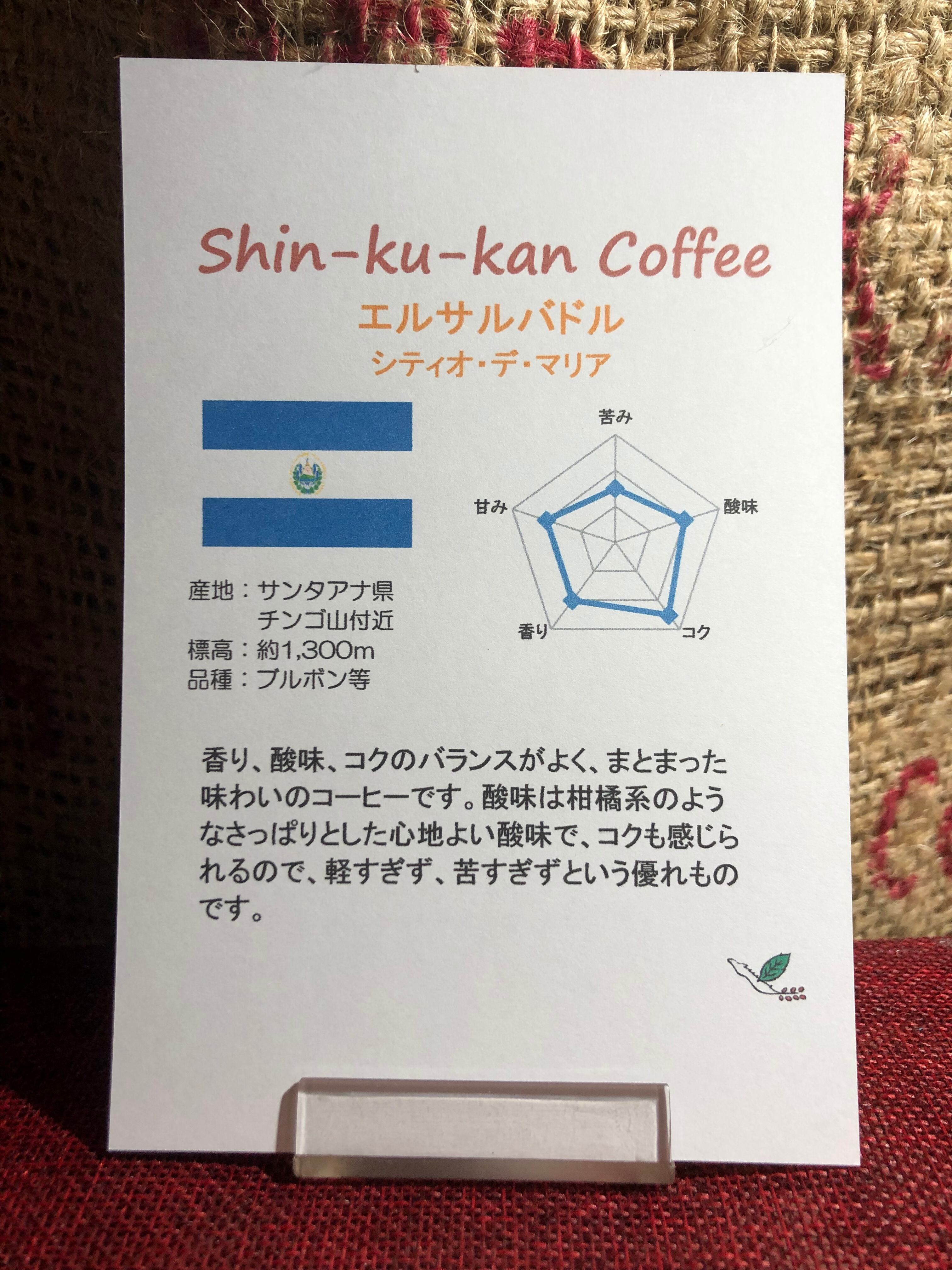 シングルオリジン エルサルバドル シティオ・デ・マリア農園のコーヒー豆です。