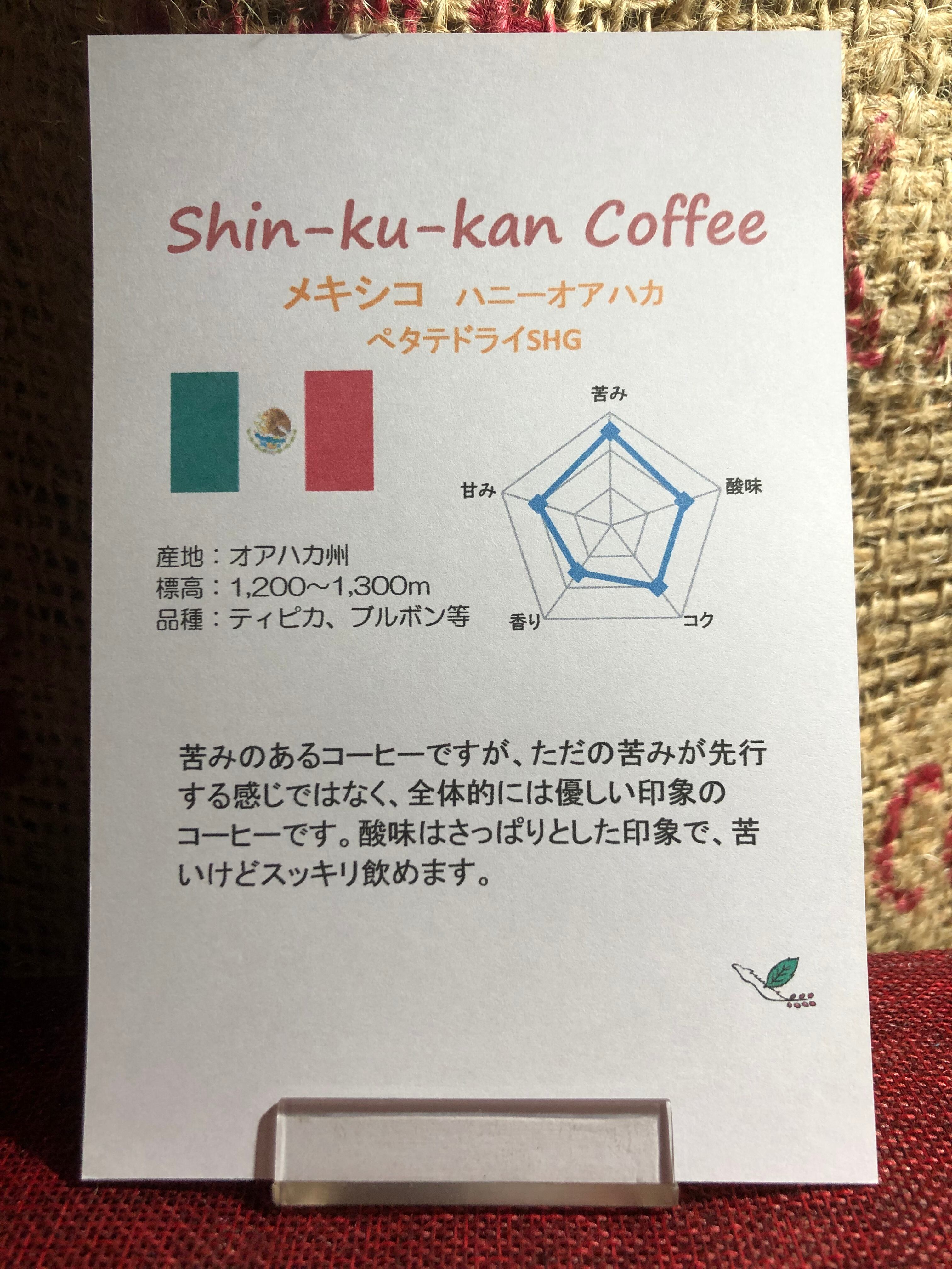 シングルオリジン メキシコ ハニーオアハカ ぺタテドライのコーヒー豆です。